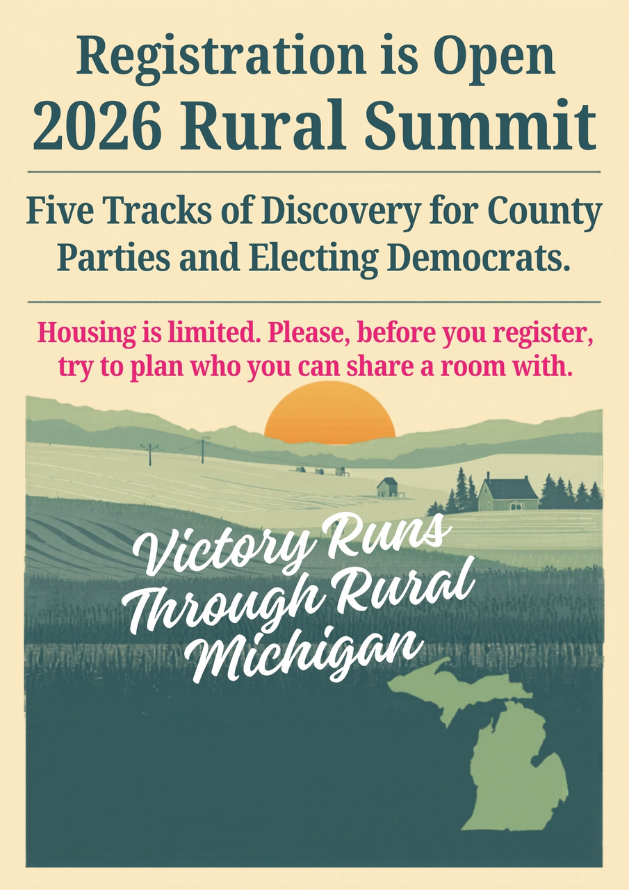 The Michigan Democratic Party Rural Caucus was chartered in July 2017 to ensure a voice for rural communities and work toward addressing the needs of rural Michigan. Rural Michigan represents 25% of the state’s population. The foundation of American democracy was built on the ideal of the self-sufficient rural citizen. While much has changed in the make up of the United States since then, today rural voters have concerns and issues that are vital to rural communities, like reliable broadband service, education, conservation, and access to healthcare. As the elections in 2016 so powerfully demonstrated, the democratic party cannot cede a single county or vote in its fight to ensure a free and fair society. In order to accomplish this goal, the Michigan Democratic Party must have a strong party structure in every region statewide. The Rural Caucus serves to ensure a voice for rural communities to communicate concerns and needs to the MDP.